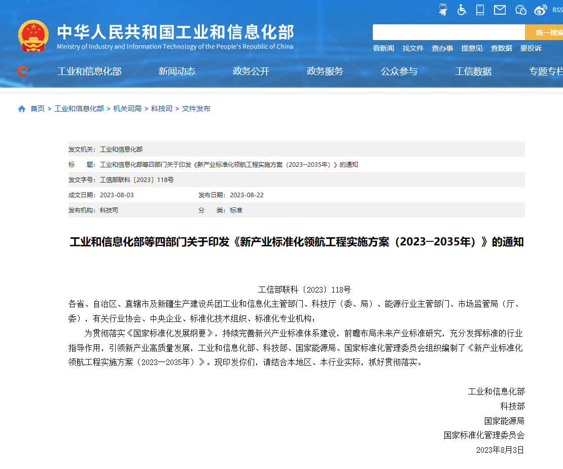 四部門印發《新產業標準化領航工程實施方案(2023—2035年)》