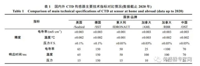 在 CTD傳感器技術中,傳感器研究和制造長期以國外技術、產品指標為跟蹤目標, 在傳感器的測量機理等基礎研究方面主要照抄國外, 缺乏系統深入地研究。