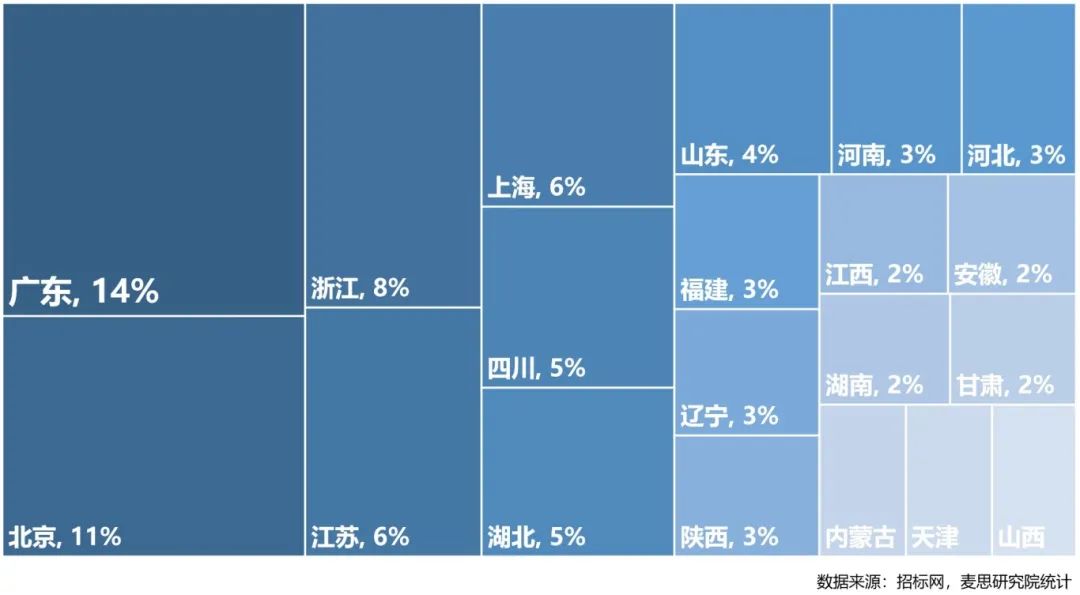 2020-2022年質(zhì)譜采購金額Top20省市占比
