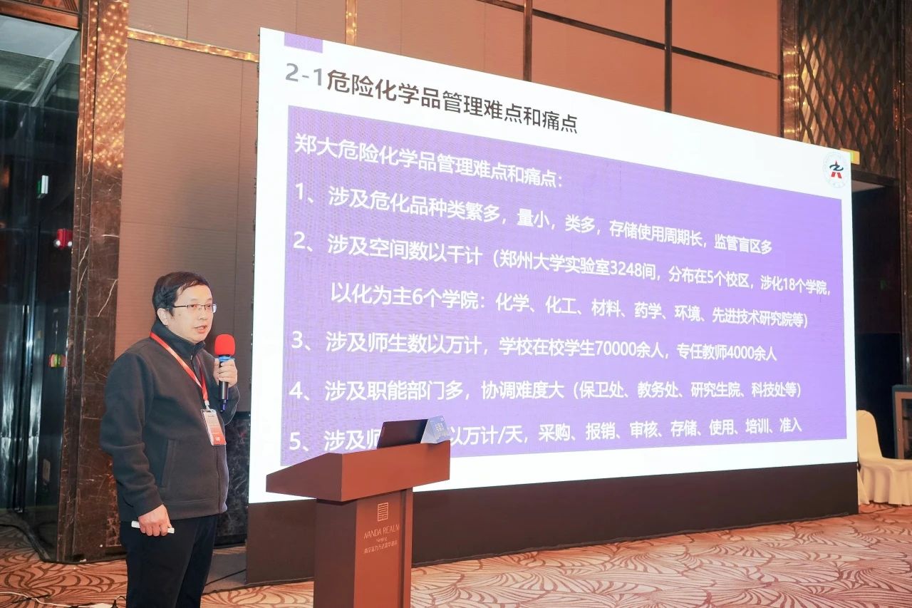 3月15日下午,“實驗室安全管理”分論壇由華中科技大學實驗室與設備管理處原處長李震彪,北京師范大學實驗室安全與設備管理處處長李崧主持。鄭州大學實驗室管理中心原主任、正處級巡視員馬國杰,誠創智能科技(江蘇)有限公司商務經理邱璟,江蘇埃德伯格電氣有限公司董事長楊勇,西安交通大學實驗室管理處處長朱臻,南京大學化學化工學院副院長李育佳,南京諾飛爾信息科技有限公司技術總監呂歡,華東師范大學化學與分子工程學院副院長張中海帶來精彩報告!