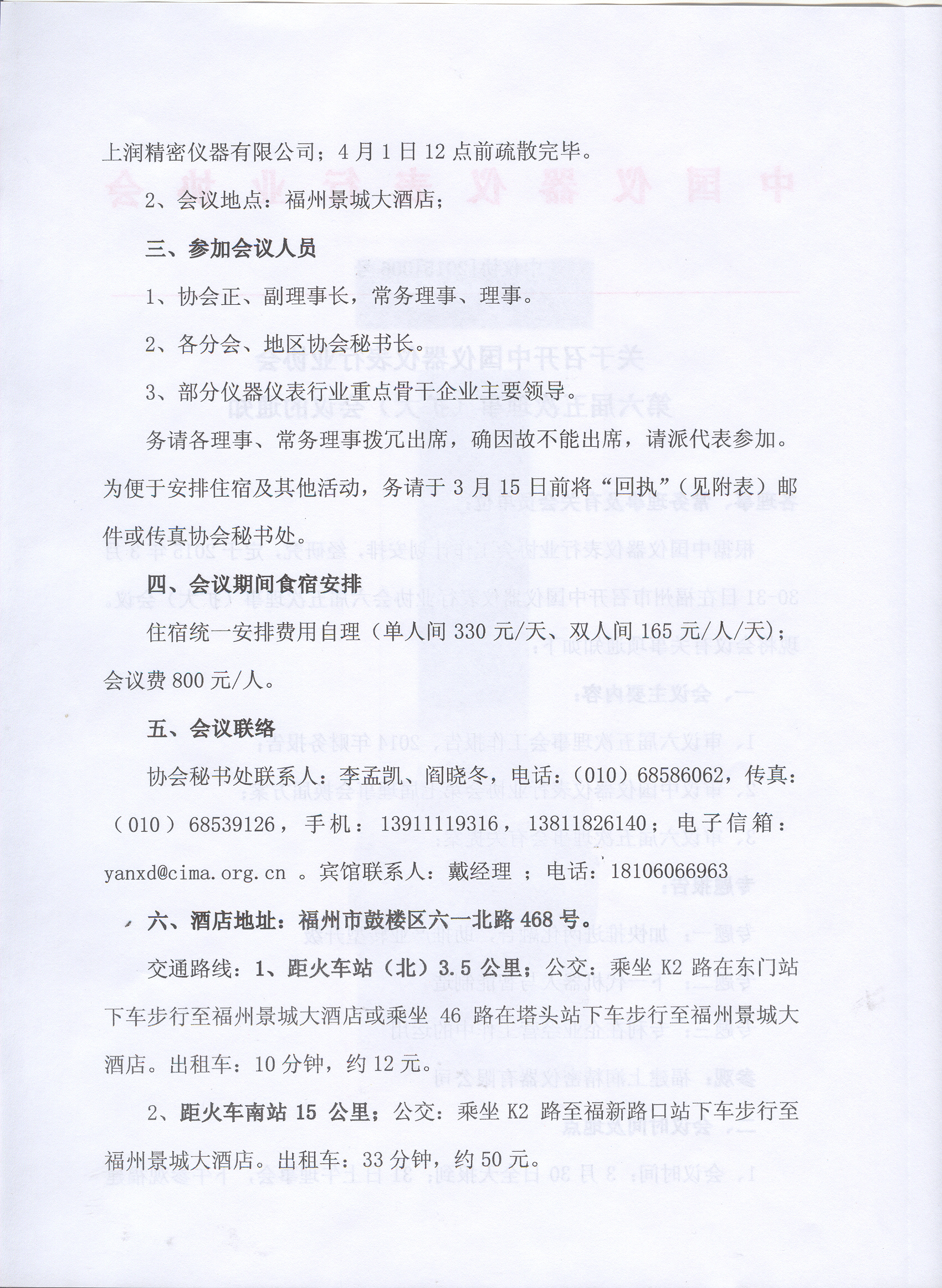 關于召開中國儀器儀表行業協會第六屆五次理事(擴大)