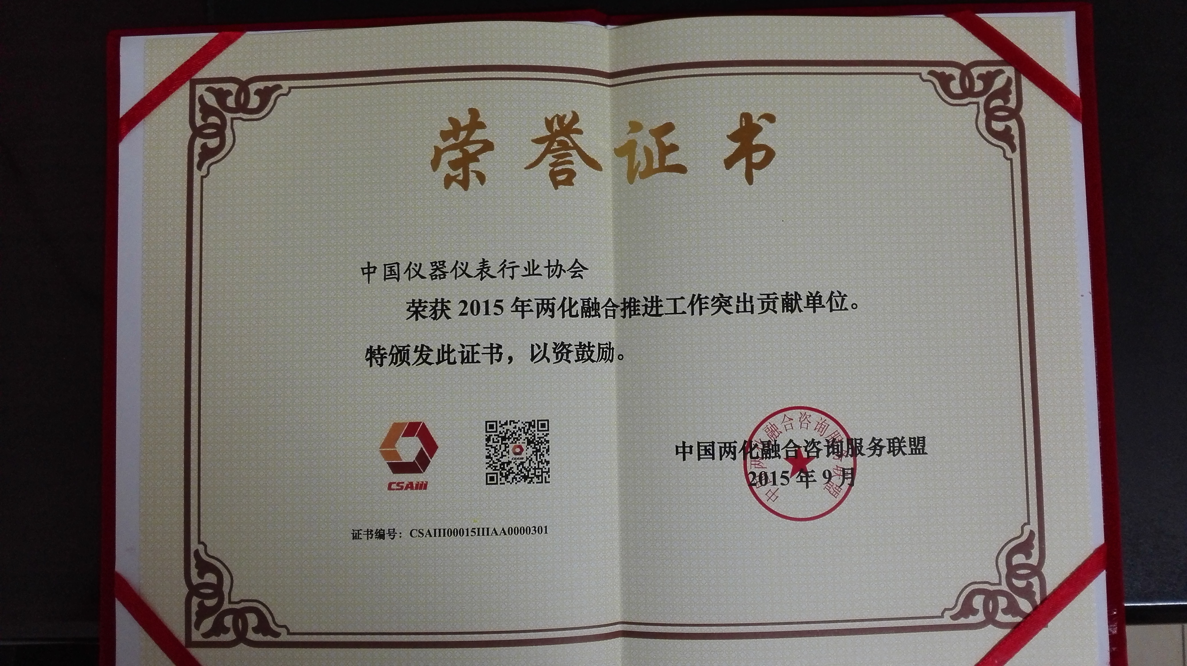 中國儀器儀表行業(yè)協(xié)會(huì)作為工信部“儀器儀表行業(yè)企業(yè)生產(chǎn)過程信息化示范及推廣應(yīng)用”試點(diǎn)項(xiàng)目的承擔(dān)單位,在儀器儀表行業(yè)大力推進(jìn)生產(chǎn)過程信息化,取得了顯著成績,榮獲2015年兩化融合推進(jìn)工作突出貢獻(xiàn)單位。
