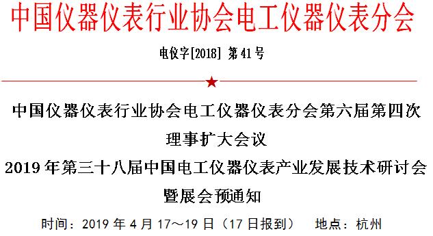 中國儀器儀表行業(yè)協(xié)會電工儀器儀表分會定于 2019 年4月在杭州召開“2019 第三十八屆中國電工儀器儀表產(chǎn)業(yè)發(fā)展技術(shù)研討會暨展會”,同期召開“中國儀器儀表行業(yè)協(xié)會電工儀器儀表分會第六屆第四次理事擴(kuò)大會議”。