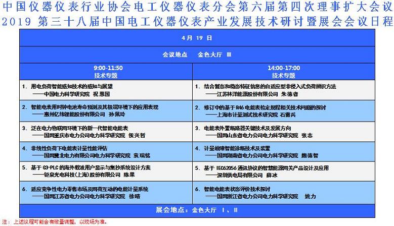 2、中國儀器儀表行業(yè)協(xié)會電工儀器儀表分會第六屆第四次理事(擴(kuò)大)會議(18日下午):