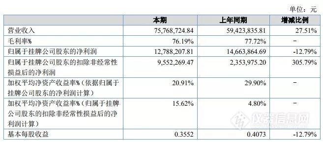 日前,蘇州紐邁分析儀器股份有限公司(簡(jiǎn)稱:紐邁分析)發(fā)布2018年年度報(bào)告。報(bào)告內(nèi)容顯示,報(bào)告期內(nèi)紐邁分析主營(yíng)的低場(chǎng)核磁共振設(shè)備業(yè)務(wù)依然堅(jiān)持穩(wěn)中求進(jìn)的發(fā)展態(tài)勢(shì)。2018 年紐邁分析共實(shí)現(xiàn)銷售收入 7,576.87 萬(wàn)元,比上年同期增長(zhǎng)27.51%;歸屬于掛牌公司股東的凈利潤(rùn)為1278.82萬(wàn)元,比上年同期減少12.79%;歸屬于掛牌公司股東的扣除非經(jīng)常性損益后的凈利潤(rùn)955.23萬(wàn)元,比上年同期增加305.79%。