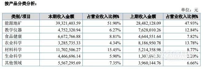 依據(jù)其主要銷售領(lǐng)域的不同,可以分為能源地礦、材料科學(xué)、食品健康、農(nóng)業(yè)、教學(xué)等幾大類,其中能源地礦 3,932.14 萬(wàn)元、材料科學(xué) 1,170.25 萬(wàn)元、食品健康領(lǐng)域?qū)崿F(xiàn) 667.28 萬(wàn)元,教學(xué)儀器為 475.23 萬(wàn)元、生命科學(xué) 446.67 萬(wàn)元、農(nóng)業(yè)科學(xué)為 328.57 萬(wàn)元、其他領(lǐng)域合計(jì)共 556.73 萬(wàn)元。在宏觀經(jīng)濟(jì)整體放緩的經(jīng)濟(jì)形勢(shì)下,公司在報(bào)告期內(nèi)仍然實(shí)現(xiàn)銷售收入的快速穩(wěn)定增長(zhǎng)。