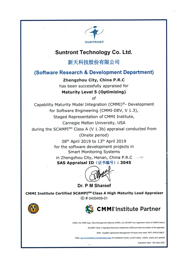 而CMMI5級作為CMMI體系中的最高等級,標志著新天科技公司軟件技術研發能力和項目管理能力等方面達到了優化管理級的國際領先水平,使新天科技公司軟件研發能力和新天科技公司產品的持續創新實力提升了一個新的高度,為新天科技公司產品的持續創新和升級奠定了一個堅實的技術基礎,是新天科技公司研發進一步規范化的重要里程碑,對新天科技公司未來可持續性發展具有重要的意義。