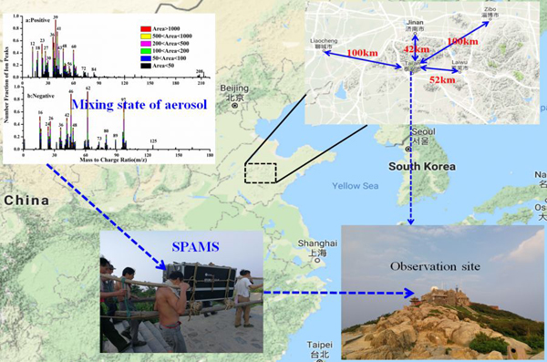 南京信息工程大學(xué)銀燕教授團(tuán)隊,于2017年夏季在泰山玉皇頂開展氣溶膠綜合觀測實驗,首次使用單顆粒飛行時間質(zhì)譜儀(SPAMS,廣州禾信)研究了泰山頂氣溶膠混合狀態(tài)及其粒徑分布特征,并探討氣溶膠混合狀態(tài)對新粒子增長過程的影響。