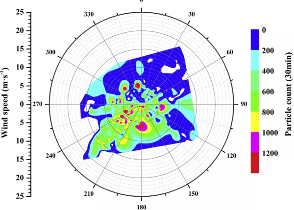 風(fēng)速風(fēng)向和SPAMS粒子數(shù)疊加圖