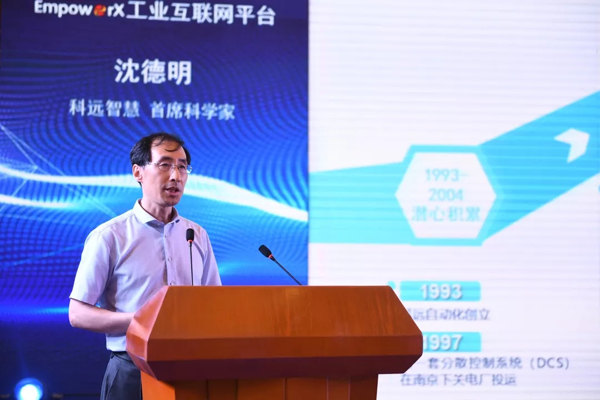 在正式發(fā)布之前,科遠智慧首席科學(xué)家沈德明教授發(fā)表《面向工業(yè)的賦能平臺——EmpoworX工業(yè)互聯(lián)網(wǎng)平臺》報告,詳細介紹了EmpoworX工業(yè)互聯(lián)網(wǎng)平臺架構(gòu)及相關(guān)功能。