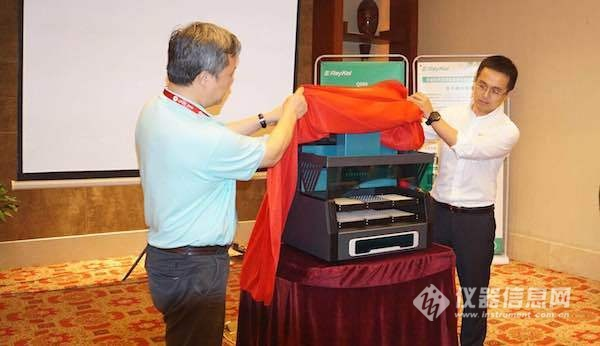 在新品揭幕儀式中,由中國(guó)農(nóng)業(yè)大學(xué)潘燦平教授和睿科集團(tuán)總經(jīng)理林志杰一起為睿科QS60全自動(dòng)QuEChERS凈化儀揭幕。