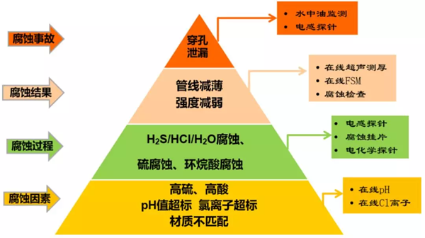 流程工業(yè)生產(chǎn)過(guò)程中,設(shè)備或者管道的腐蝕,可能造成環(huán)境污染、工廠停工甚至?xí)o員工的生命和企業(yè)的財(cái)產(chǎn)安全造成危害。據(jù)統(tǒng)計(jì),腐蝕事故約占化工事故的31%,我國(guó)每年因腐蝕造成的直接經(jīng)濟(jì)損失占我國(guó)3.5~5%GDP。