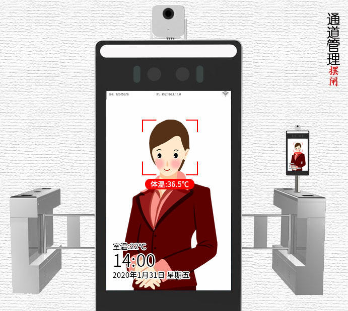 熱成像人體測溫門(以下簡稱:測溫門)是一種精確、便利的測溫設備。當人站在測溫門內(nèi),額頭對準測溫點1-2秒,體溫正常,則測溫門顯示正常體溫值。如果體溫超過37.3℃時測溫門就會自動聲光報警。