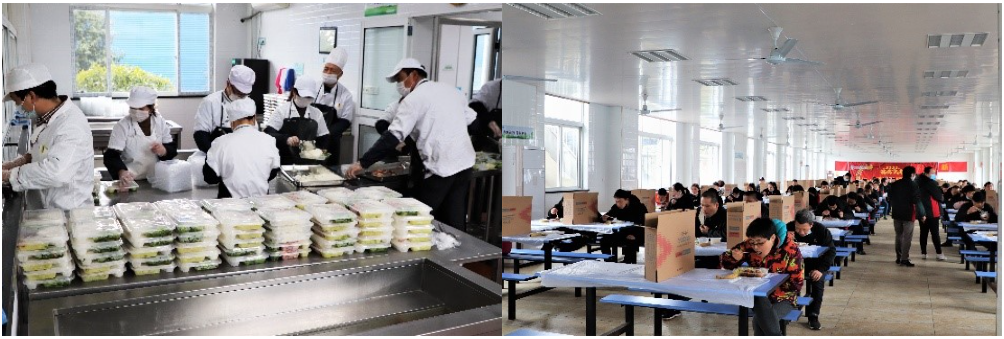 (寧波水表公司董事長作為志愿者為員工分餐)