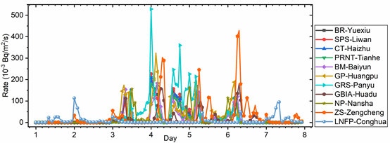模型輸出廣州市各區(qū)放射性物質(zhì)沉降速率