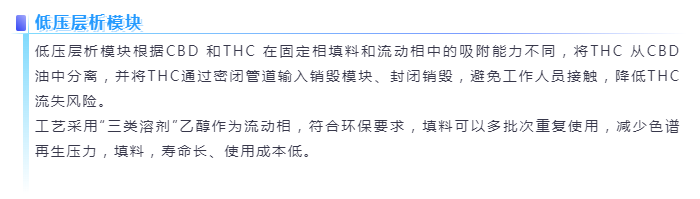 無論你是需要99%以上純度的CBD還是不含THC的全譜油,從花葉原料到成品的一站式交鑰匙服務。漢邦科技工業(yè)大麻提純整體解決方案采用低壓層析和高壓制備靈活組合,產(chǎn)品收率高,無論是高純度的CBD還是不含THC的全譜油都能輕松獲得,滿足用戶不同需求。