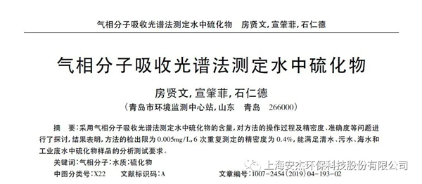 工業(yè)廢水中的氨氮,硫化物的含量非常高,且伴隨了色度,濁度等其他指標(biāo)的影響。在檢測過程中對實驗室操作人員非常不友好。已經(jīng)有相關(guān)的文獻報道測量工業(yè)廢水中利用氣相分子吸收光譜法來測定氨氮以及硫化物。與分光光度法進行對比, 氣相分子吸收光譜法具有簡便快速、測量準(zhǔn)確等優(yōu)點。