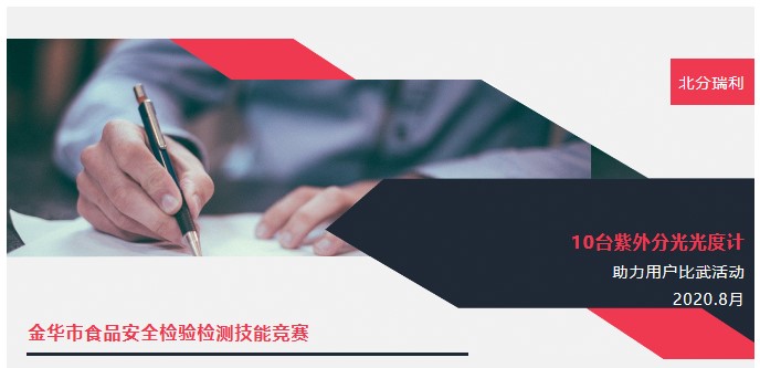 8月18日-19日金華市市場(chǎng)監(jiān)督管理局舉辦、金華市食品藥品檢驗(yàn)檢測(cè)研究院承辦的2020年度金華市市食品安全檢驗(yàn)檢測(cè)技能競(jìng)賽比武活動(dòng)如期開展,北分瑞利10臺(tái)紫外分光光度計(jì)為此次比武活動(dòng)的指定實(shí)驗(yàn)儀器。