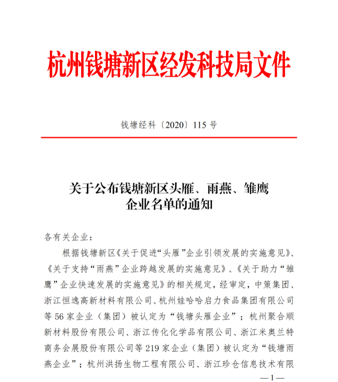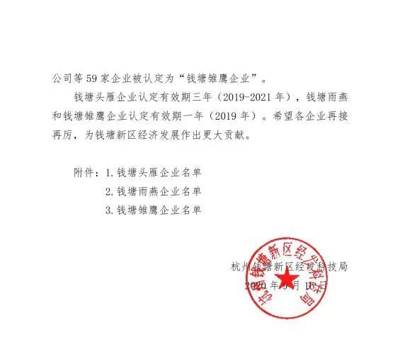 近日,杭州錢塘新區(qū)經(jīng)發(fā)科技局印發(fā)《關(guān)于公布錢塘新區(qū)頭雁、雨燕、雛鷹企業(yè)名單的通知》。根據(jù)通知內(nèi)容,杭州美儀自動(dòng)化有限公司被認(rèn)定為“錢塘雨燕企業(yè)”。
