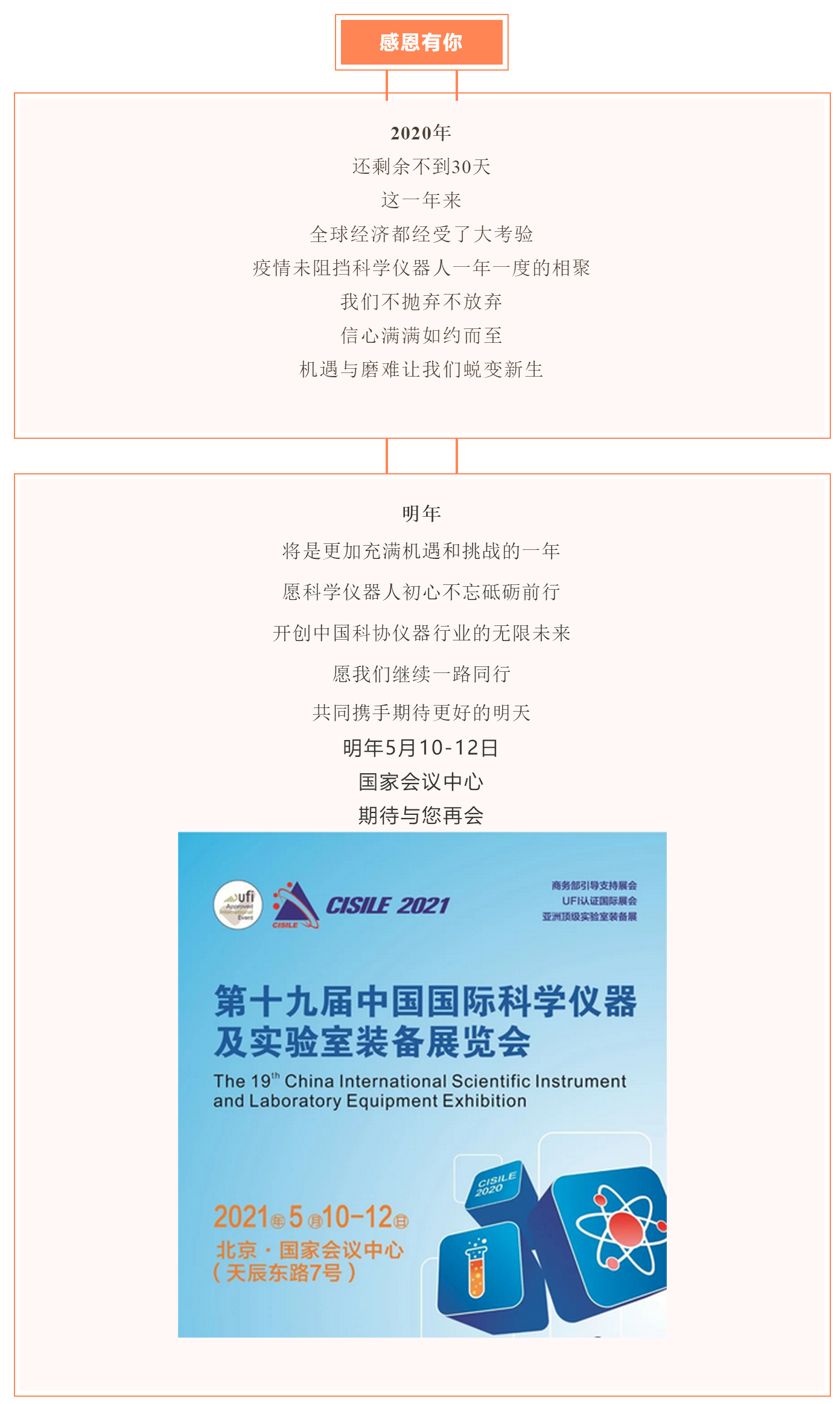 2020年全球經濟、貿易都經受了巨大考驗,一場突如其來的疫情改變了許多人的工作、生活、出行計劃和方式。不過,2020年全球科學儀器行業依然表現強勢。展會期間,雖然室外寒冷刺骨,但觀眾前來參觀的熱情依舊不減,各大展臺上人流如潮!CISILE2020科儀展繼續保持超強展商陣容和高品質專業服務水平,帶來含金量極高的會議活動,為科學儀器全產業鏈專業人士提供高端開放、深度交流的商貿平臺。展會上,2.5萬多平方米的展示面積,600余家參展企業驚艷亮相,30,000余人次專業觀眾共同參與,237萬+次瀏覽量線上同步觀展,1場高端同期學術會議活動傾情呈現,3場同期論壇精彩紛呈。