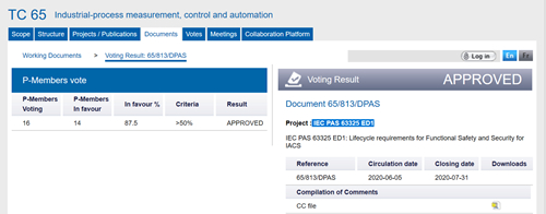 2020年12月8日,我國主導制定的國際標準《工業自動化控制系統安全一體化生命周期要求》正式發布,編號為IEC PAS 63325:2020。