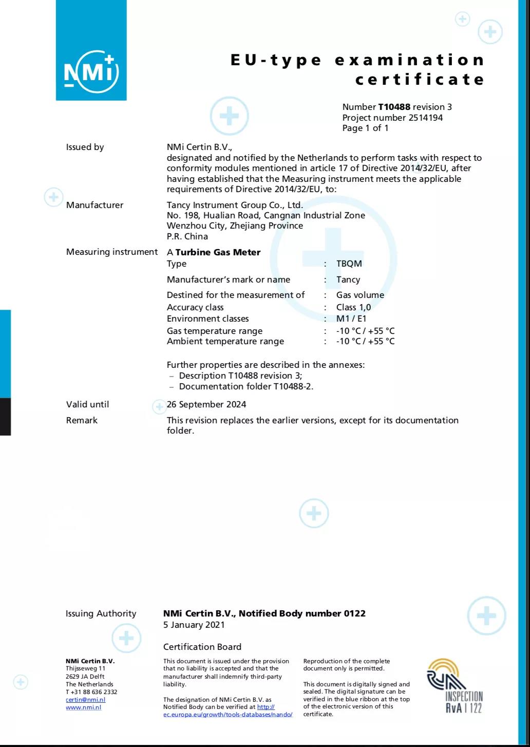 該認證驗證了TBQM型氣體渦輪流量計在低溫工況下實現1.0級精準計量,實現公平公正的計量交接,推動產品在海外市場進一步拓展。