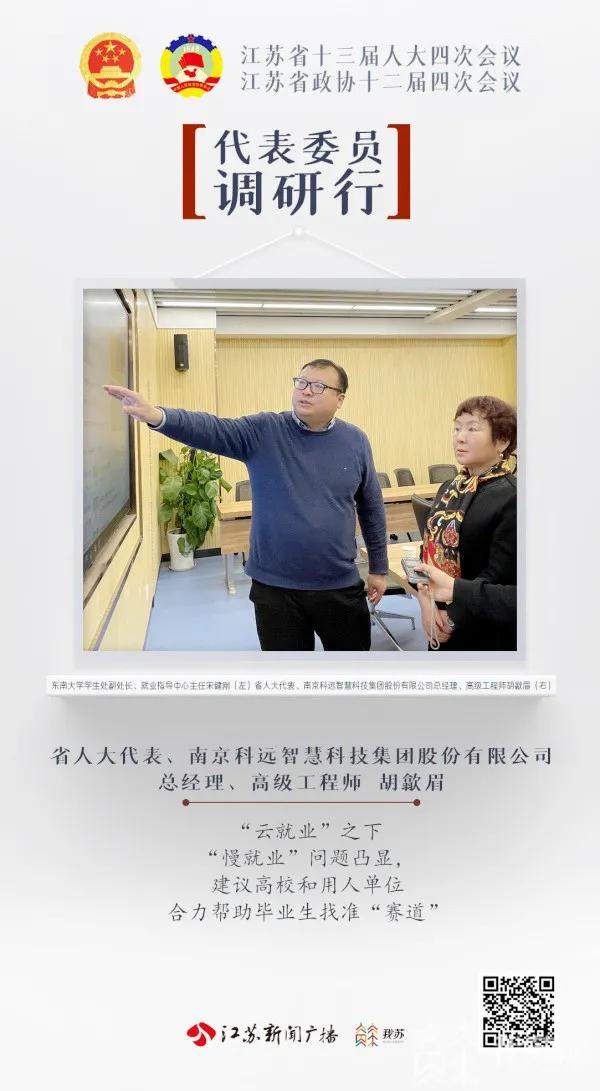 就業(yè)是經(jīng)濟(jì)的“晴雨表”,是民生的“壓艙石”。疫情防控常態(tài)化背景下,高校畢業(yè)生的就業(yè)問(wèn)題是當(dāng)前也是未來(lái)一段時(shí)間的工作重點(diǎn)之一。在省兩會(huì)召開前夕,省人大代表、科遠(yuǎn)智慧總裁胡歙眉前往東南大學(xué)就業(yè)指導(dǎo)中心進(jìn)行調(diào)研。