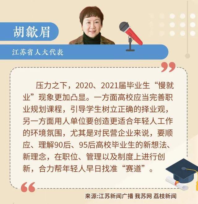胡歙眉發(fā)現(xiàn),壓力之下,2020、2021屆畢業(yè)生“慢就業(yè)”現(xiàn)象更加凸顯,無(wú)論快與慢,年輕人盡快找準(zhǔn)屬于自己的“賽道”才是關(guān)鍵。如何讓畢業(yè)生能夠結(jié)合自身優(yōu)劣勢(shì)制定個(gè)人規(guī)劃,更好地為國(guó)家重點(diǎn)需要發(fā)展領(lǐng)域做出貢獻(xiàn),都是學(xué)校、用人單位都需要思考的問(wèn)題。