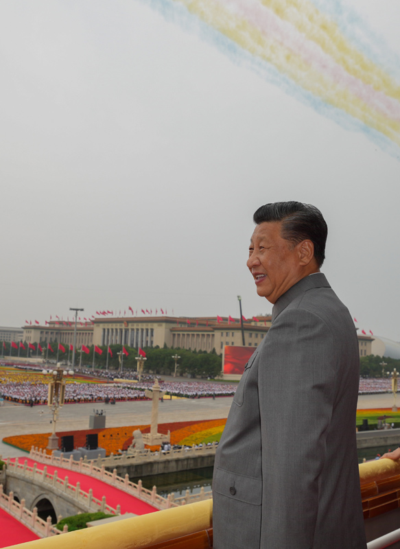 7月1日上午,慶祝中國共產黨成立100周年大會在北京天安門廣場隆重舉行。中共中央總書記、國家主席、中央軍委主席習近平發表重要講話。這是習近平在天安門城樓上。新華社記者 李學仁 攝