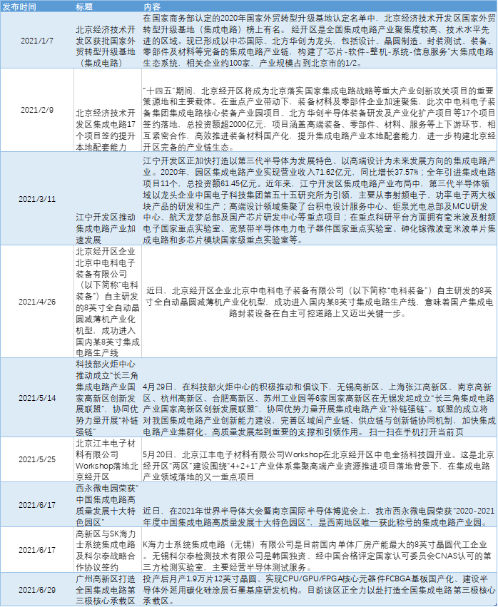 2021年集成電路產業集群重點事件