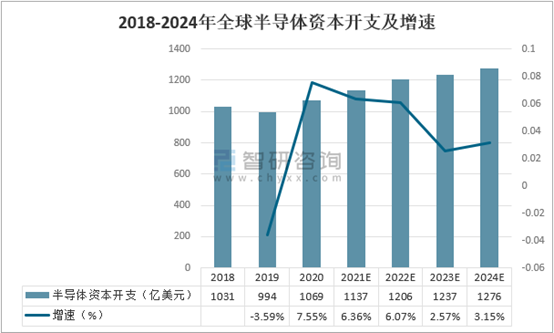 2018-2024年全球半導(dǎo)體資本開支及增速