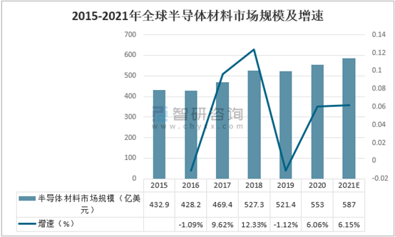 2015-2021年全球半導(dǎo)體材料市場規(guī)模及增速