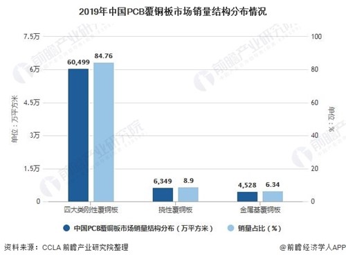 2019年中國PCB覆銅板市場銷量結構分布情況
