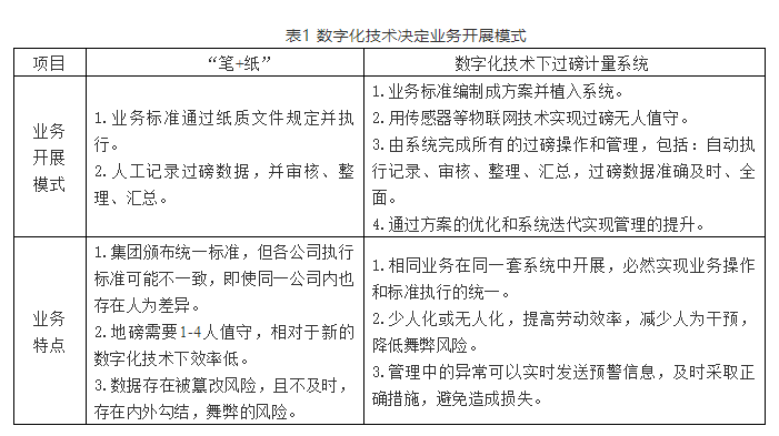 以企業(yè)過磅計(jì)量為例。下表代表了不同技術(shù)下的業(yè)務(wù)開展模式,“筆+紙”也是代表了當(dāng)時(shí)的一種科學(xué)技術(shù)。