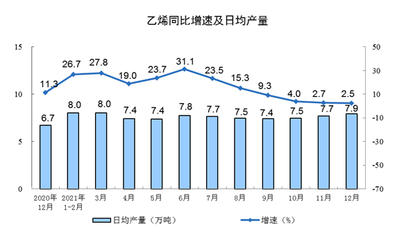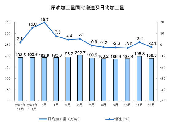 分產品看,12月份,612種產品中有288種產品產量同比增長。鋼材11355萬噸,同比下降5.2%;水泥19085萬噸,下降11.1%;十種有色金屬547萬噸,下降3.8%;乙烯245萬噸,增長2.5%;汽車296.6萬輛,增長3.4%,其中新能源汽車52.3萬輛,增長113.5%;發電量7234億千瓦時,下降2.1%;原油加工量5873萬噸,下降2.1%。