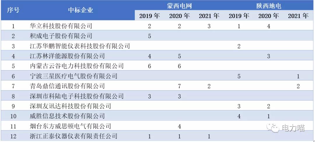 近三年共有12家企業(yè)在上述兩個(gè)地方電網(wǎng)中標(biāo)。