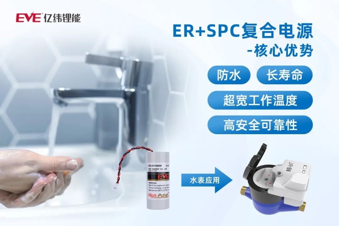 億緯鋰能擁有智能水表全系列解決方案,包括ER、CR、ES復合電源,其中,由億緯鋰能自主創(chuàng)新研發(fā)的ES復合電源方案,兼顧了鋰亞電池長壽命、電池電容器輸出大脈沖的優(yōu)勢,有效地保障水表更穩(wěn)定、精確、長壽命運行,且采用獨特的電池組灌膠工藝,可以滿足水浸場景應用。