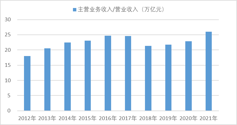 2012-2021年機械工業主營業務收入/營業收入[1]