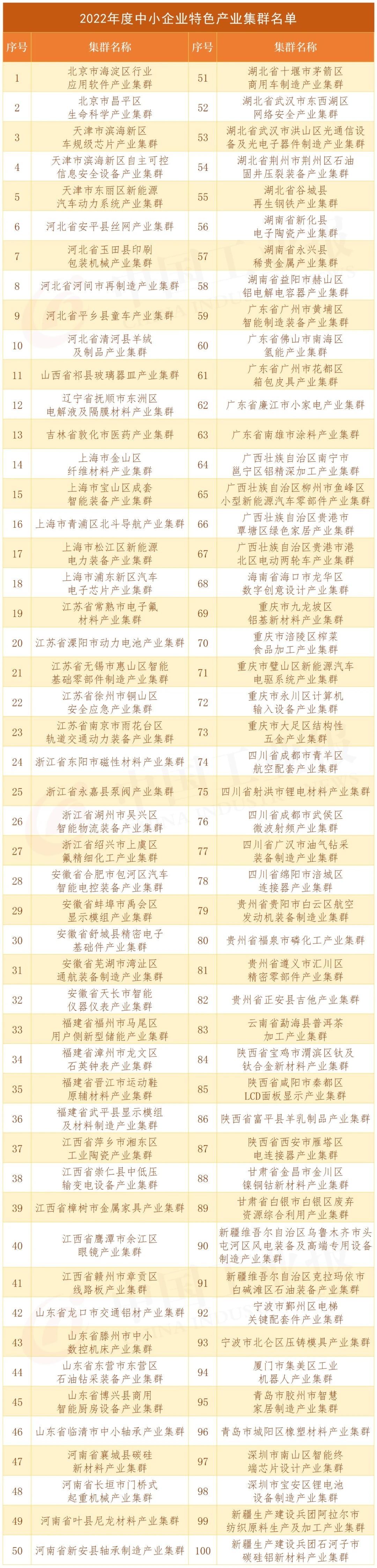 據悉,2023年,工業和信息化部還將在全國范圍內再培育100個左右中小企業特色產業集群,推動各地圍繞加快數字化、綠色化轉型,提升治理和服務能力等方面加大培育力度。