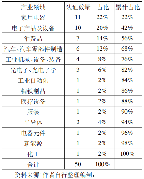 從企業屬性看,46家大陸企業的平均注冊資金為37億人民幣,基本為所在行業的大型頭部企業;46家大陸企業平均成立年份為16.5年,其中2001年中國“入世”前成立的企業15家,占比26.1%1988年成立的中信戴卡股份有限公司(生產鋁合金車輪)和廣州寶潔有限公司(生產日化產品)經營時間最久。這說明我國傳統制造業轉型升級的空間巨大,對此應該有堅定的信心。