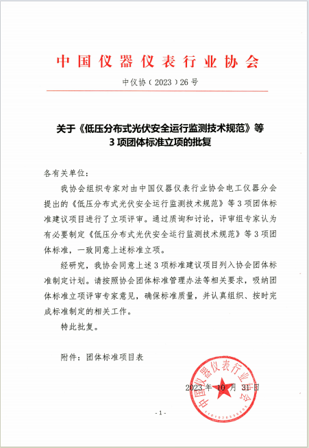 我協(xié)會組織專家對由中國儀器儀表行業(yè)協(xié)會電工儀器分會提出的《低壓分布式光伏安全運行監(jiān)測技術規(guī)范》等3項團體標準建議項目進行了立項評審。通過質詢和討論,評審組專家認為有必要制定上述標準,一致同意該9項團體標準立項。