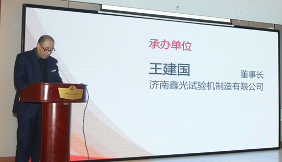 濟(jì)南鑫光試驗(yàn)機(jī)制造有限公司總經(jīng)理王建國(guó)首先對(duì)參會(huì)來賓表示熱烈歡迎,并介紹了企業(yè)概況和成績(jī)。