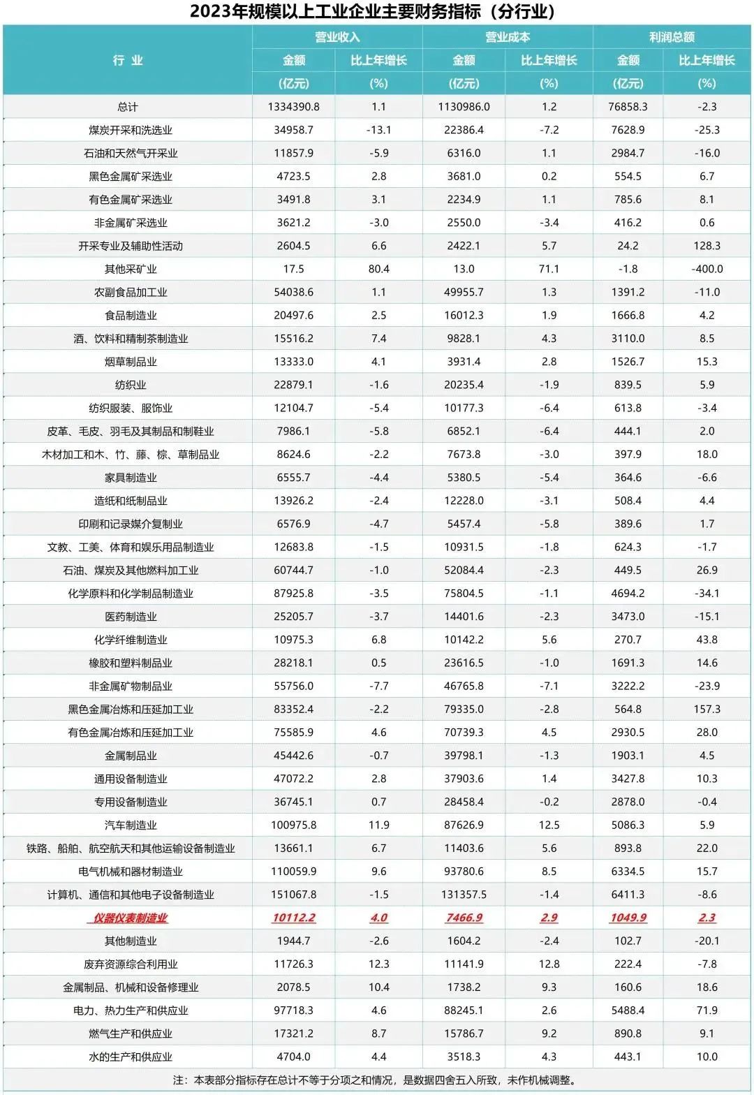 儀器儀表制造業的營業收入為10112.2億元,同比增長4%,利潤總額為1049.9,同比增長2.3%。