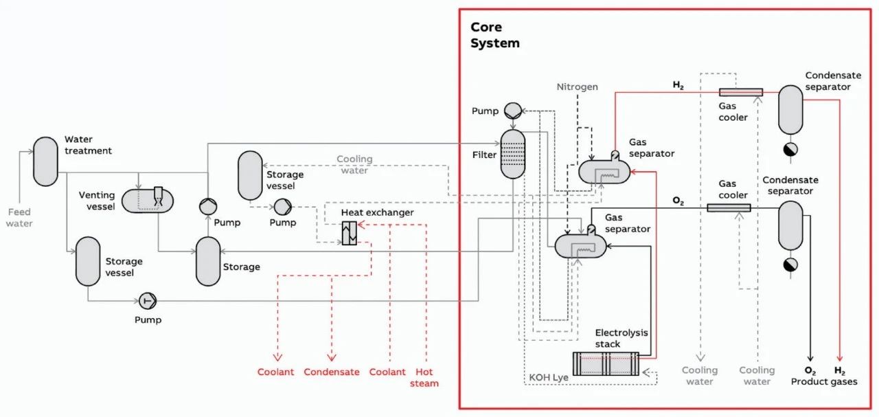 電解氫工藝的過程控制包含三個主要功能——安全操作、高效的電氫轉換和氣體純度控制。在電解過程中面臨的一個挑戰是,在氫氣流中積聚小濃度的氧氣以及在氧氣流中積聚氫氣的可能性。電解槽堆疊組件可能將氣體從電解槽的一側泄漏到另一側(ISO22734將其定義為故障狀態)。