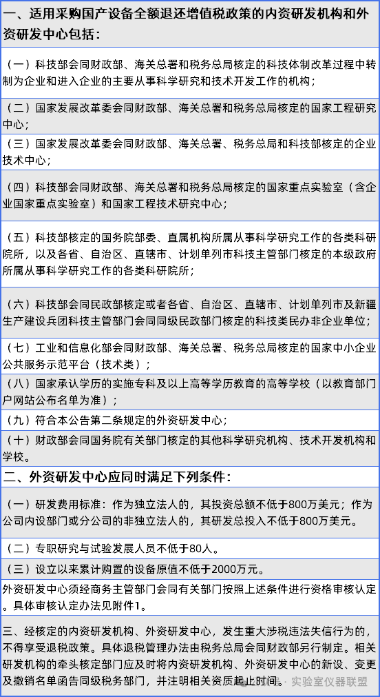 涉及全額退還增值稅的相關(guān)設(shè)備清單,也在財(cái)政部、商務(wù)部、稅務(wù)總局三部門去年8月印發(fā)的《關(guān)于研發(fā)機(jī)構(gòu)采購設(shè)備增值稅政策的公告》中做了詳細(xì)公布。
