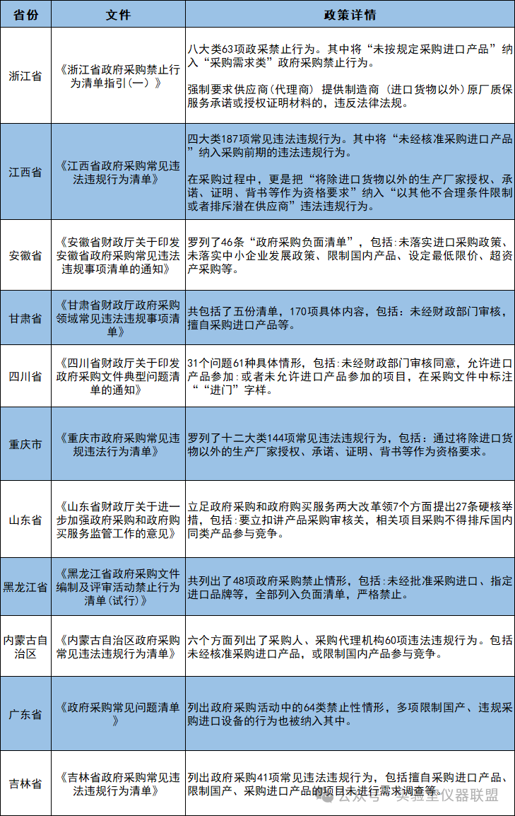 包括浙江、廣東、黑龍江、吉林等多省接連發(fā)布通知,著重強(qiáng)調(diào)應(yīng)當(dāng)采購本國(guó)產(chǎn)品,把政府采購中限制國(guó)產(chǎn)設(shè)備、違規(guī)采購進(jìn)口等行為,納入負(fù)面清單嚴(yán)格禁止。