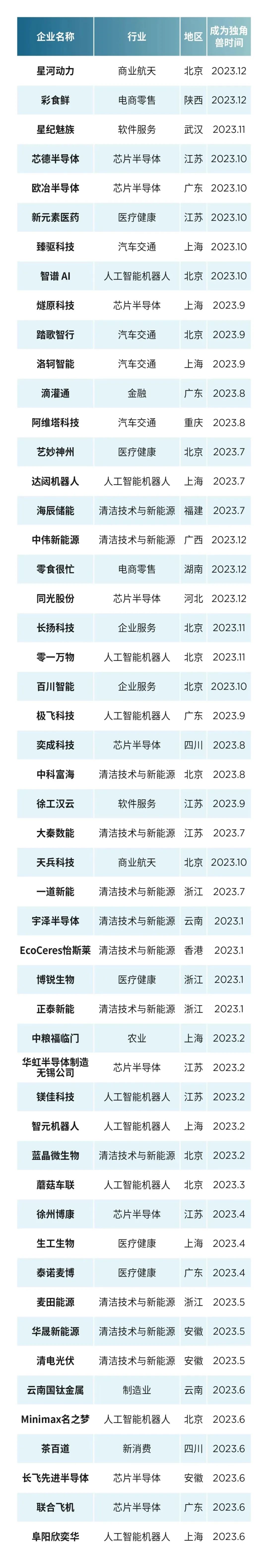 下為2023年中國51家新晉獨角獸企業(yè)名單: