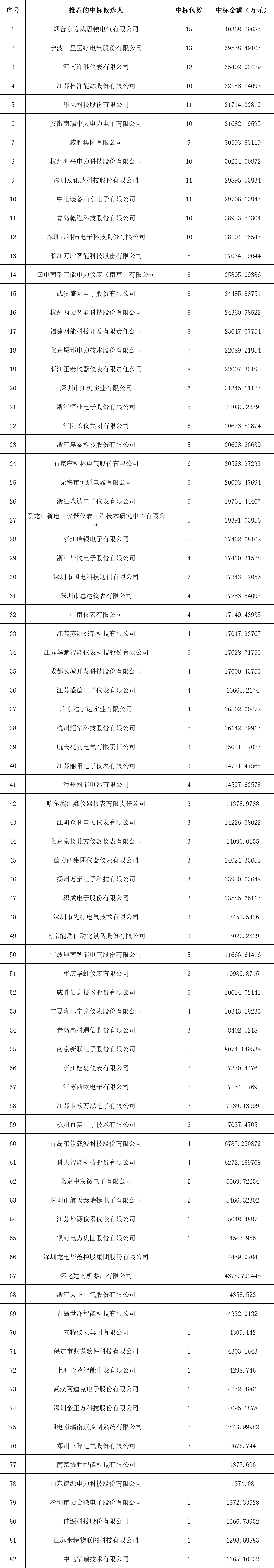 國(guó)家電網(wǎng)有限公司2024年第十五批采購(gòu)(營(yíng)銷項(xiàng)目第一次計(jì)量設(shè)備招標(biāo)采購(gòu))(招標(biāo)編號(hào):0711-24OTL01522004)評(píng)標(biāo)工作已經(jīng)結(jié)束。依據(jù)《中華人民共和國(guó)招標(biāo)投標(biāo)法實(shí)施條例》、《招標(biāo)公告和公示信息發(fā)布管理辦法》對(duì)中標(biāo)候選人公示的規(guī)定,現(xiàn)將評(píng)標(biāo)委員會(huì)推薦的中標(biāo)候選人予以公示,公示期3日。投標(biāo)人或者其他利害關(guān)系人若對(duì)評(píng)標(biāo)結(jié)果有異議的,請(qǐng)?jiān)谥袠?biāo)候選人公示期間以書面形式(郵件)提出。
