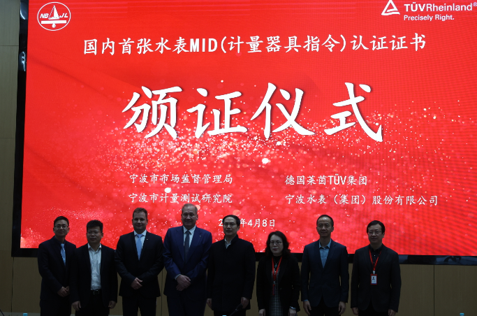 近日,寧波水表科技(集團(tuán))股份有限公司在國(guó)家水表產(chǎn)品質(zhì)量檢驗(yàn)檢測(cè)中心(寧波中心)通過(guò)德國(guó)萊茵TUV認(rèn)證公司認(rèn)證,獲得國(guó)內(nèi)頒發(fā)的首張MID認(rèn)證證書。