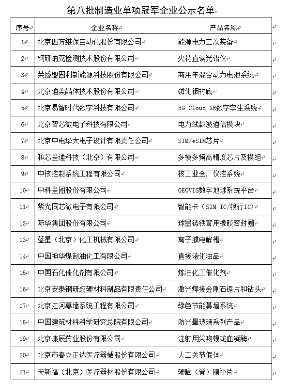 今天,各省市工信廳(局)陸續披露第八批制造業單項冠軍企業和通過復核的第二批、第五批制造業單項冠軍企業名單,其中不乏儀器儀表行業企業的身影,小編做了摘取,以饗讀者。